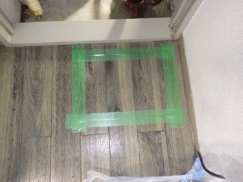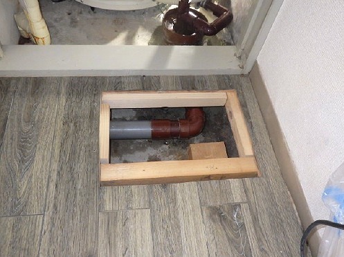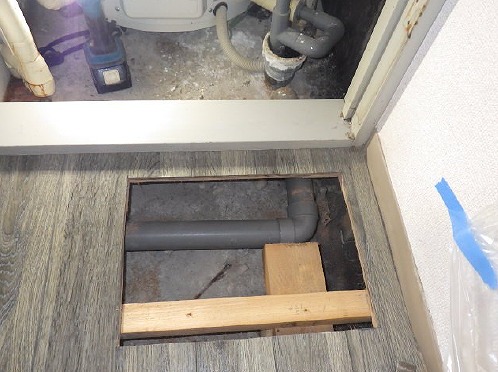 続いて、作業に伴う室内養生を行ったうえで床を開口し、床下の配管状況を詳細に調査しました。